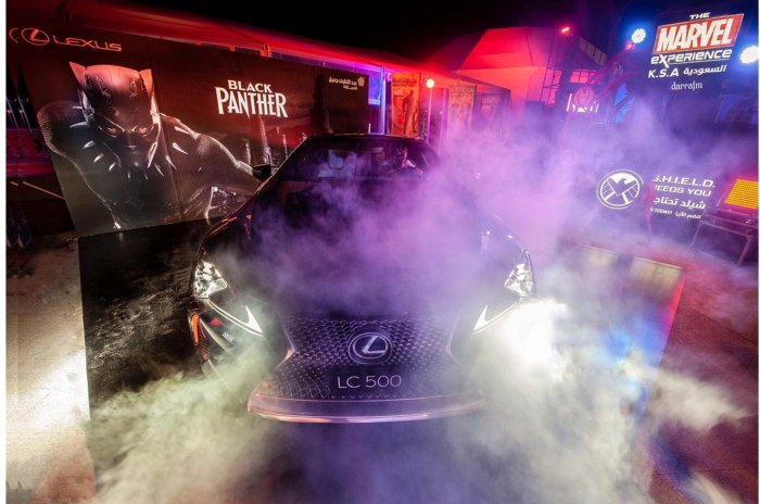 كان لشركة عبد اللطيف جميل "لكزس" حضورها البارز في أول نسخة من تجربة عالم مارفل على الواجهة البحرية، والتي قدمت عروض للرسوم المتحركة ثلاثية الأبعاد وألعاب الواقع الإفتراضي المعزز، مع تجربة تفاعلية لمحبي وعشاق حكايات مارفل الشهيرة عالميًّا ومنحهم القدرة على التفاعل مع عوالم إفتراضية ممتعة لشخصيات مثل النمر الأسود وسبايدر مان وأيرون مان وغيرهم من الشخصيات المشهورة مع المشاركة بالدفاع عن الأرض ضد الشر في تجربة ملحمية بتقنية 360 درجة، وفي هذا الحدث الترفيهي الكبير عرضت لكزس سياراتها الرياضية الفاخرة LC500 التي ترتبط بالفيلم الأمريكي المشوق النمر الأسود "Black Panther"، والذي تظهر فيه سيارة لكزس LC500 كأحد أدوات الأبطال الخارقين لمحاربة الأعداء، وقد ساعدها بذلك تصميمها الجريء ذو الأداء العالي وحركتها ومناوراتها الرشيقة التي تتناسب تماماً مع الردود السريعة التي تشبه حركة بطل الفيلم النمر الأسود وإمكانياته الخارقة لتكون لكزس ثنائي مكملاً لشخصية البطل الذي يدخل في صراع هائل للدفاع عن عرشه وليهزم خصومه ويطلق القوة الكامنة للنمر الأسود الذي لعب دوره الممثل تشادويك بوسمان، أما الإخراج فكان للمخرج ريان كوغلر.