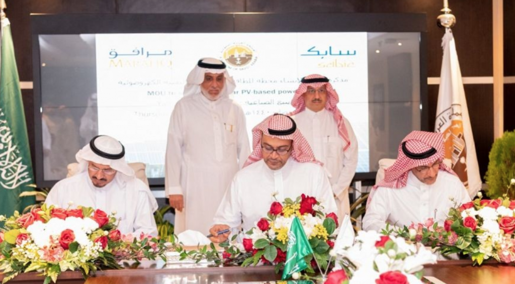 أُبرمت في مدينة ينبع الصناعية مذكرة تفاهم بين الهيئة الملكية للجبيل وينبع وكل من الشركة السعودية للصناعات الأساسية "سابك" وشركة مرافق لدراسة إنشاء محطة للطاقة الشمسية الكهروضوئية بمدينة ينبع الصناعية، التي ستكون حال إنشائها أول مشروع ضخم للطاقة المتجددة ينفذه القطاع الخاص في المملكة، بحضور الرئيس التنفيذي للهيئة الملكية بينبع المهندس عدنان العلوني، ونائب رئيس مجلس إدارة سابك الرئيس التنفيذي لشركة سابك يوسف البنيان والرئيس التنفيذي لشركة مرافق المهندس عبد الله البوعينين.