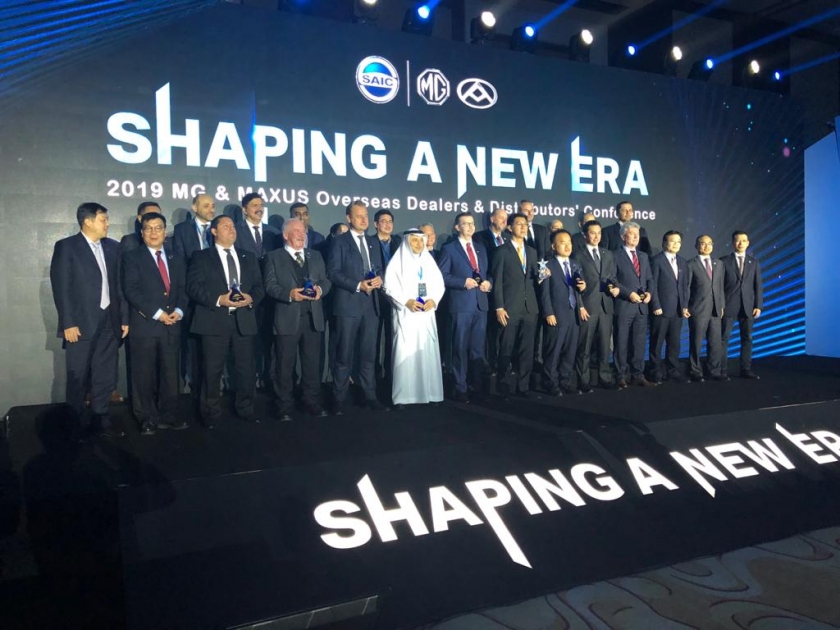 الدكتور صالح جميل ملائكة الرئيس التنفيذي لمجموعة تأجير تسلم الجائزة التقديرية من السيد توم لي رئيس شركة سايك الشرق الأوسط وأفريقيا خلال حفل كبير أقيم على منصة سيارات MG في اليوم الأول لمعرض شنغهاي الدولي للسيارات على هامش إطلاق العديد من الطرازات الجديدة لعلامة MG للعام 2020 وحضر حفل التكريم من جانب مجموعة تأجير كبار المدراء التنفيذيين يتقدمهم المهندس حزم جمجوم مدير العمليات.