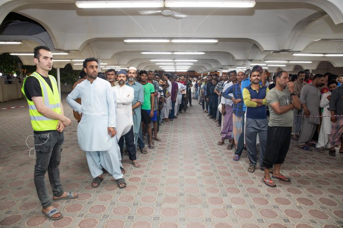 وكان ختام تلك المبادرات التطوعية مبادرة "إفطار صائم" بالتعاون مع هيئة تنمية المجتمع حيث تواجد الفريق التطوعي في سكن العمال في منطقة القوز للمشاركة في إفطار الصائمين من العمال.