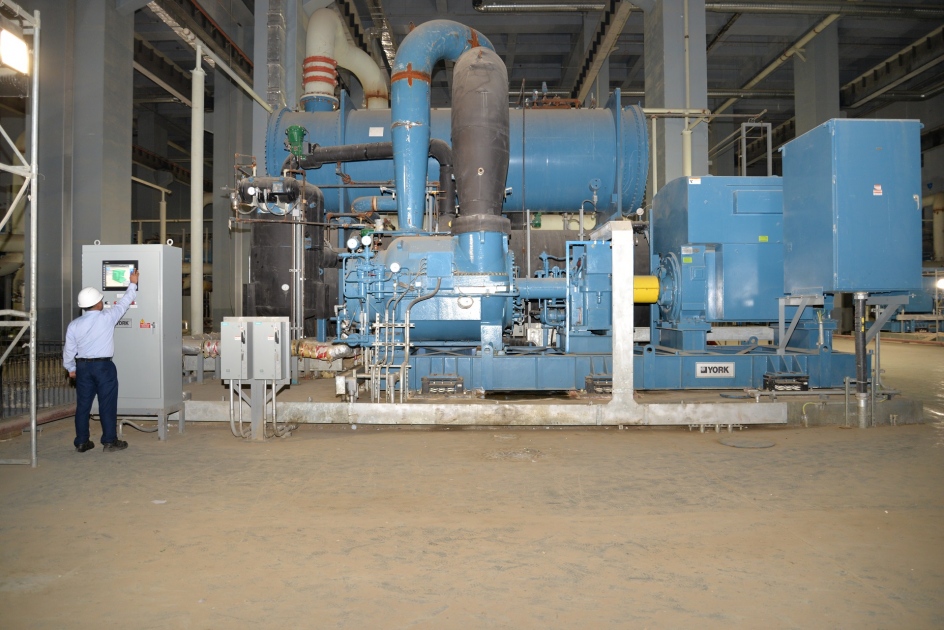 تعد محطة الشامية إحدى أكبر محطتي تبريد من نوعها في العالم، وتضم 24 مبرد (تشيلر) يورك من نوع OM ذي الطرد المركزي، وهي الأكبر من نوعها عالميًا، وتقدر السعة التبريدية لكل مبرد منها 5000 طن تبريد، ويبلغ وزن كل منها 170 ألف كيلوجرام. يتميز هذا النوع من المبردات (التشيلرات) بالمرونة والفعالية والدقة، إلى جانب عمرها الافتراضي، الذي يتراوح ما بين 40-50 عامًا. وقد ساعد تصميمها الصناعي على التشغيل طويل المدى وبكفاءة عالية، بينما تسهم تقنية المحركات متغيرة السرعة في خفض الاستهلاك السنوي للطاقة إلى نحو 30%، علاوة على خفض معدلات الصوت.