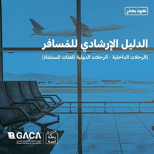 ولتحميل الدليل الإرشادي للمسافر، نرجوا زيارة الموقع الإلكتروني للهيئة العامة للطيران المدني: https://gaca.gov.sa/ .