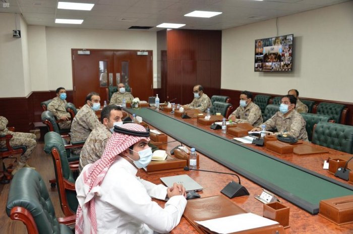 رأس معالي رئيس هيئة الأركان العامة الفريق الأول الركن فياض بن حامد الرويلي عبر الاتصال المرئي، اليوم, إيجاز خلية دعم الأزمات المؤقتة لجائحة كورونا بوزارة الدفاع, بحضور معالي مساعد وزير الدفاع للشؤون التنفيذية الدكتور خالد بن حسين البياري, وأصحاب المعالي قادة أفرع القوات المسلحة, والرئيس التنفيذي لبرنامج تطوير وزارة الدفاع, وقائد خلية دعم الأزمات المؤقتة لجائحة كورونا بالوزارة والجهات المعنية بالوزارة.