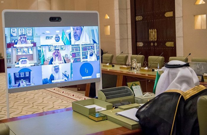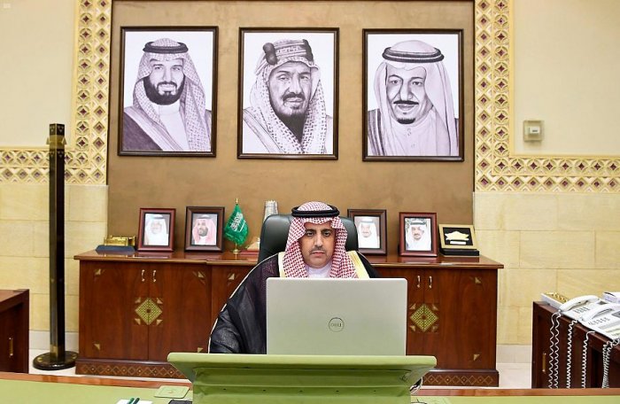 رأَس صاحب السمو الملكي الأمير فيصل بن بندر بن عبدالعزيز أمير منطقة الرياض رئيس مجلس المنطقة , في مكتب سموه بقصر الحكم عبر الاتصال المرئي اليوم , جلسة المجلس الأولى لدورته الأولى لعام 1442هـ .