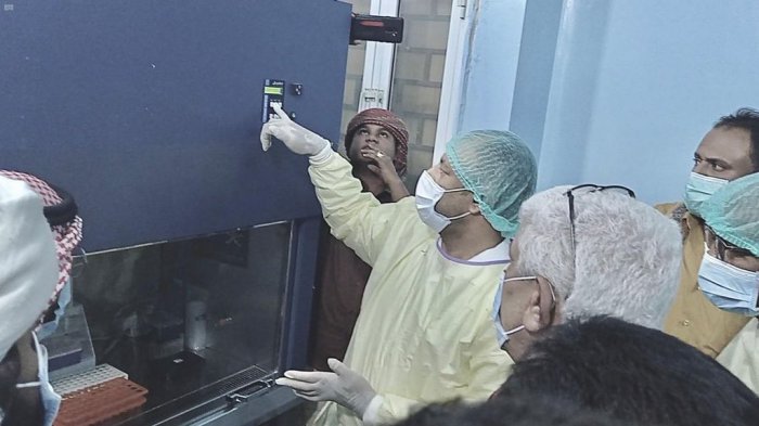 دشن مركز الملك سلمان للإغاثة والأعمال الإنسانية أمس العمل بوحدة الـ (PCR) في منفذ الوديعة البري بمحافظة حضرموت للكشف عن فيروس كورونا المستجد (كوفيد - 19).