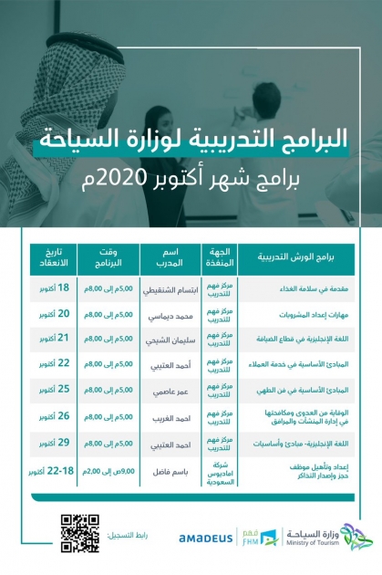 ودعت الوزارة المهتمين والعاملين في قطاعات السياحة في المملكة إلى الاستفادة من البرامج التدريبية التي ستطلقها غداً وتستمر حتى شهر أبريل 2021م.