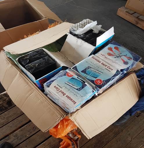 وتنوعت البضائع المحظورة التي تم ضبطها من قبل مركز جمارك جبل علي، حيث تمكن ضباط التفتيش الجمركي من تنفيذ ضبطية لخشب الصندل في شحنة تجارية مخالفة لاتفاقية تنظيم التجارة بالحيوانات والنباتات المعرضة للانقراض "سايتس" وشملت الضبطية كمية بلغت 33930 كيلوجرام من خشب الصندل مخبئة في حاوية تجارية، كما تم تنفيذ ضبطية لحبوب المخدرة جرى تعبئتها في 32 صندوق مخبأة بين البضائع التجارية احتوت على 53760 حبة مخدرة، ونُفذت كذلك ضبطية لمادة ألبان كانت مخبأة في 5544000 كيس من الاكياس البلاستيكية معبأة في 92400 صندوق وضعت بين البضائع التجارية أيضا.