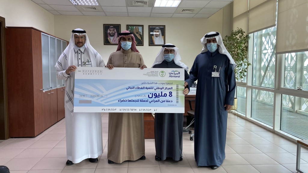 قدمت شركة المراعي دعمًا نقديًا مقداره 8 ملايين ريال سعودي مساهمة منها في حملة التشجير الوطنية التي أطلقها هذا العام المركز الوطني لتنمية الغطاء النباتي التابع لوزارة البيئة والمياه والزراعة بهدف زراعة 10 ملايين شجرة خلال فترة الحملة من أكتوبر 2020 إلى 30 أبريل 2021، ضمن مبادرات الوزارة لتمكين رؤية المملكة 2030 بالمحافظة على البيئة والثروات الطبيعية.