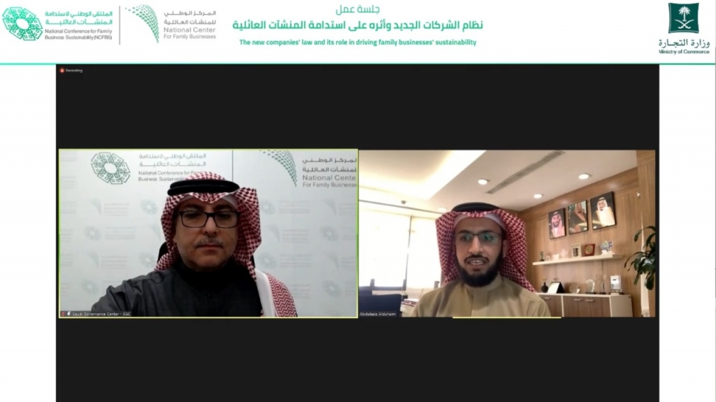 قال وكيل وزارة التجارة المساعد للأنظمة واللوائح الأستاذ عبد العزيز الدحيم، في الجلسة الأولى من اليوم الثاني في الملتقى الوطني لاستدامة المنشآت العائلية، أن الوزارة تعمل في مشروع نظام الشركات الجديد، لتفعيل حوكمة الشركات بشكل أكبر وزيادة تفصيلاتها.