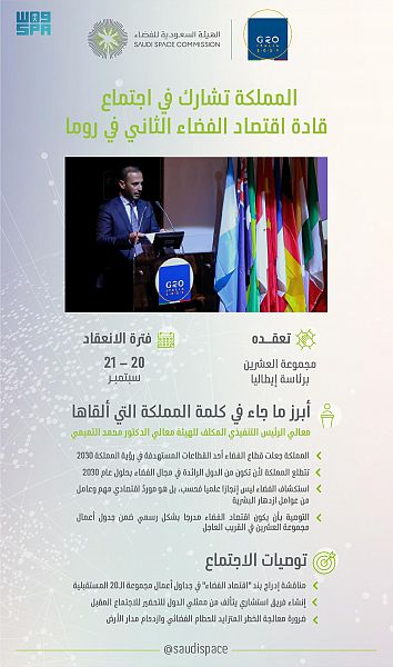 يشار إلى أن انعقاد اجتماع قادة الفضاء يعد أحد مخرجات رئاسة المملكة لمجموعة العشرين،التي أدرجته لأول مرة ضمن مواضيع جدول أعمال المجموعة، التي تسعى من خلاله إلى تعزيز التعاون الفضائي بين الدول لتعظيم فوائد اقتصاد الفضاء وفوائد استخدام البيانات الفضائية في دعم التنمية المستدامة والأمن الغذائي والصحة العالمية.