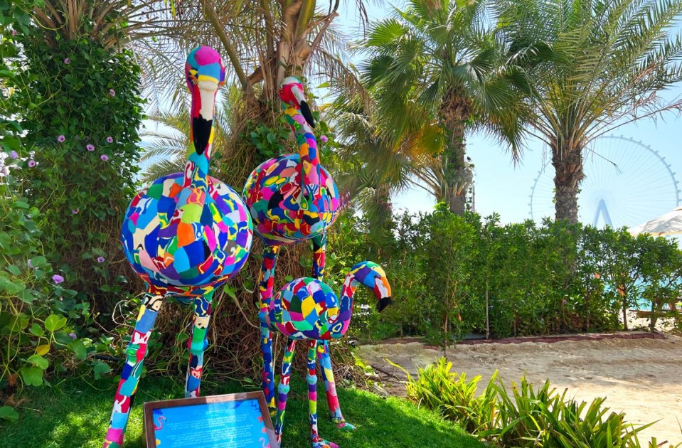 قام شاطئ "أزور" في دبي بشراء منحوتات الفلامنجو الفريدة من نوعها المصنوعة من نعال معاد تدويرها والمنحوتة يدويًا من قبل الحرفيين الكينيين، ويتم عرضها بفخر في نادي الشاطئ.