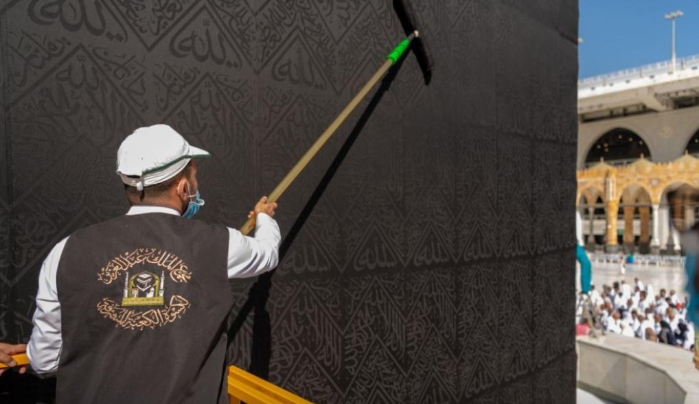 باشر الوكيل المساعد لشؤون مجمع الملك عبدالعزيز لكسوة الكعبة المشرفة المهندس فارس بن محمد المطرفي، أعمال صيانة وتنظيف كسوة الكعبة المشرفة من قبل وكالة مجمع الملك عبدالعزيز لكسوة الكعبة المشرفة، ممثلة في إدارة صيانة كسوة الكعبة المشرفة بأعمال شد الحزام وصيانة ثوب الكعبة المشرفة ليحتفظ برونقه، إضافة إلى تثبيت أطرافه، أوضح ذلك مدير إدارة صيانة كسوة الكعبة المشرفة بالمسجد الحرام الأستاذ فهد بن حضيض الجابري.