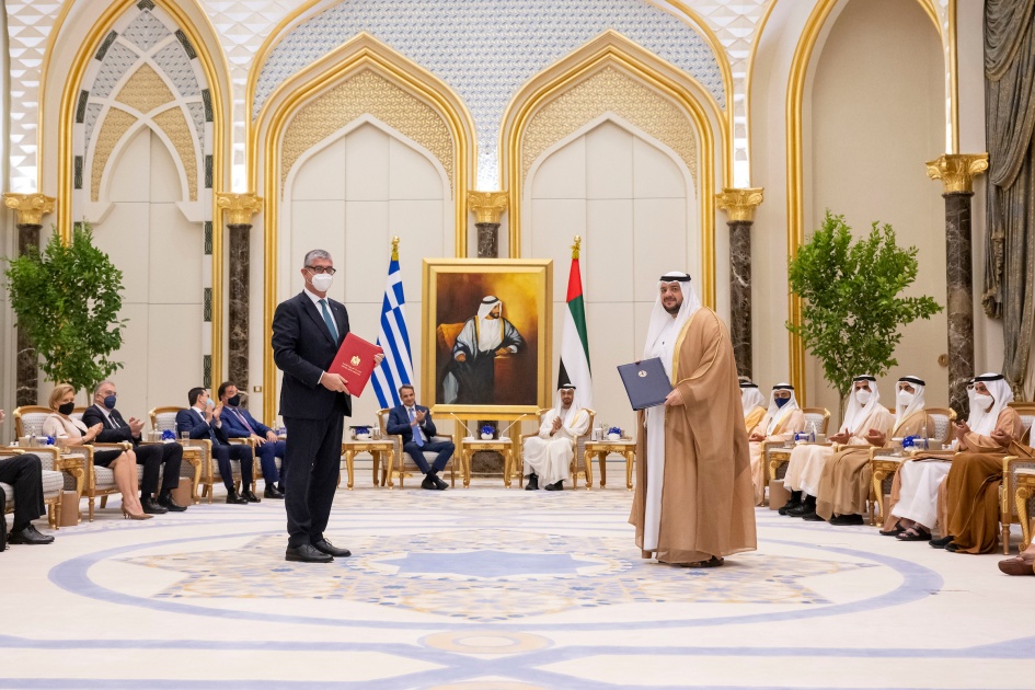 وتم توقيع الاتفاقيّة في إمارة أبوظبي بحضور كريم من صاحب السمو الشيخ محمد بن زايد آل نهيان ولي عهد أبوظبي نائب القائد الأعلى للقوات المسلّحة بدولة الإمارات العربيّة المتّحدة، ورئيس الوزراء اليوناني؛ معالي كيرياكوس ميتسوتاكيس. وتبادل الاتفاقية كلّ من معالي كونستانتينوس فراجكوجيانيس، نائب وزير الخارجية وسعادة أيوانيس تساكيريس، نائب وزير التنمية والاستثمار في اليونانّ من جهة، وسعادة محمد حسن السّويدي، العضو المنتدب والرئيس التنفيذي لِـ "القابضة" (ADQ) من جهة أخرى.