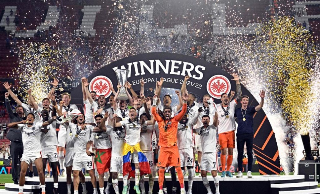 توج فريق آينتراخت فرانكفورت الألماني بلقب الدوري الأوروبي لكرة القدم، عقب فوزه على رينجرز الأسكتلندي 5-4 بضربات الترجيح، عقب نهاية الوقت الأصلي والإضافي بالتعادل 1 - 1.