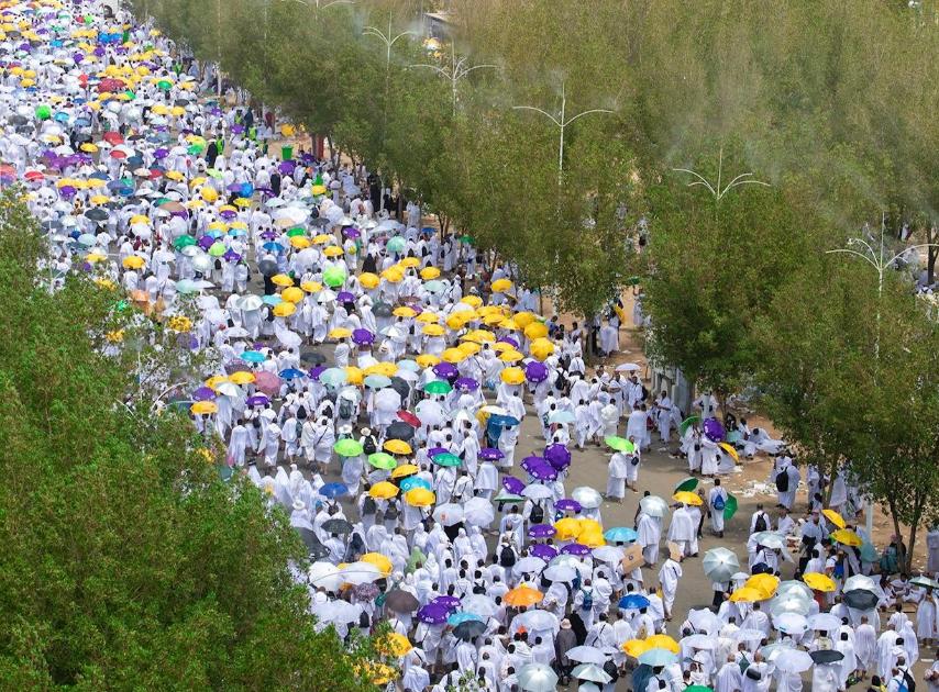 حرص حجاج بيت الله الحرام على اقتناء المظلات الشمسية بألوانها المختلفة وصناعاتها المتنوعة وأحجامها لتوفير الظلال من أشعة الشمس خلال وقوفهم بصعيد عرفات .
