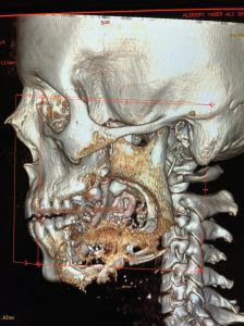 وأكد التجمع الصحي بالقصيم أن المريض حضر إلى قسم جراحة الوجه والفكين في المستشفى وهو يعاني من ورم في الفك السفلي الأيسر منذ 3 سنوات، وبعد عمل الأشعة والفحوصات الطبية اللازمة تبين انتشاره في كافة أجزاء الفك ليقرر الفريق المعالج التدخل الجراحي باستئصال كامل الورم والفك، والذي تم تعويضه باستخدام عظمة من شظية الساق وتزويدها بأجزاء مصنعة بتقنية الطباعة ثلاثية الأبعاد. وقد تكللت العملية التي استغرقت 15 ساعة بالنجاح، والمريض يكمل فترة النقاهة في المستشفى.