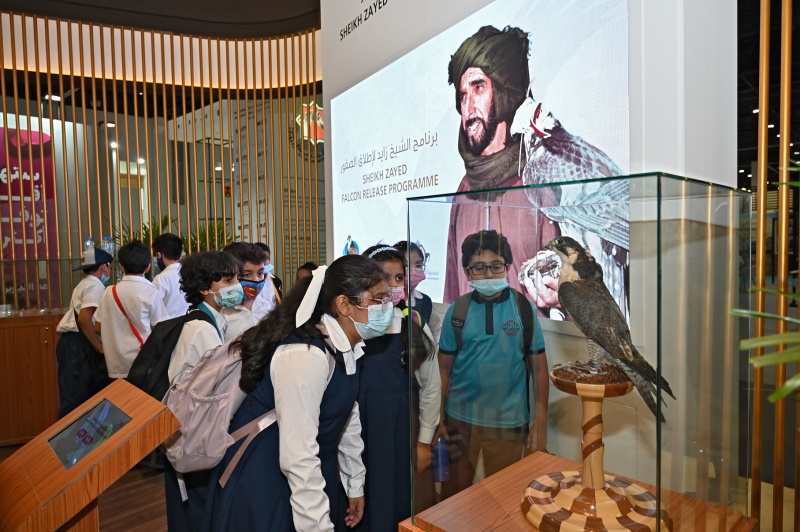 ويُتيح برنامج زيارة طلبة المدارس، الذي تحرص إدارة المعرض على تطويره سنوياً، الفرصة للطالبات والطلاب من مختلف الفئات العُمرية فرصة التعرّف على ركائز التراث الإماراتي، وبشكل خاص الصقارة والسلوقي العربي ومشاريع إكثار الصقور والحبارى في الأسر، بالإضافة إلى مُشاهدة العروض الحيّة للخيول والكلاب البوليسية والطيور الجارحة والرماية التقليدية.