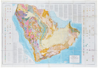 كما سيتم عرض خريطة كبيرة ومفصلة تصور جيولوجيا شبه الجزيرة العربية ويعود تاريخها إلى عام 1963، حيث تم تجميعها في العام نفسه كجزء من مشروع من قبل هيئة المسح الجيولوجي الأمريكية وشركة النفط العربية الأمريكية تحت رعاية مشتركة من المملكة العربية السعودية عبر وزارة البترول والثروة المعدنية، ووزارة الخارجية الأمريكية.