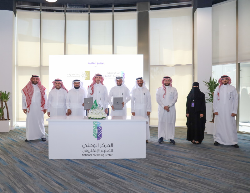 الوطني للتعليم الإلكتروني في مقرّه بالرياض اليوم الخميس الموافق 06 أكتوبر 2022م، مذكرة تفاهم مع جامعة الجوف، لتصبح الجامعة الشريك العاشر في مبادرة "مكّن" ضمن برنامج الشهادات المهنية الاحترافية في التعليم والتدريب الإلكتروني، وذلك بحضور سعادة مدير عام المركز الوطني للتعليم الإلكتروني الدكتور عبدالله بن محمد الوليدي وسعادة رئيس جامعة الجوف الأستاذ الدكتور محمد بن عبدالله الشايع.