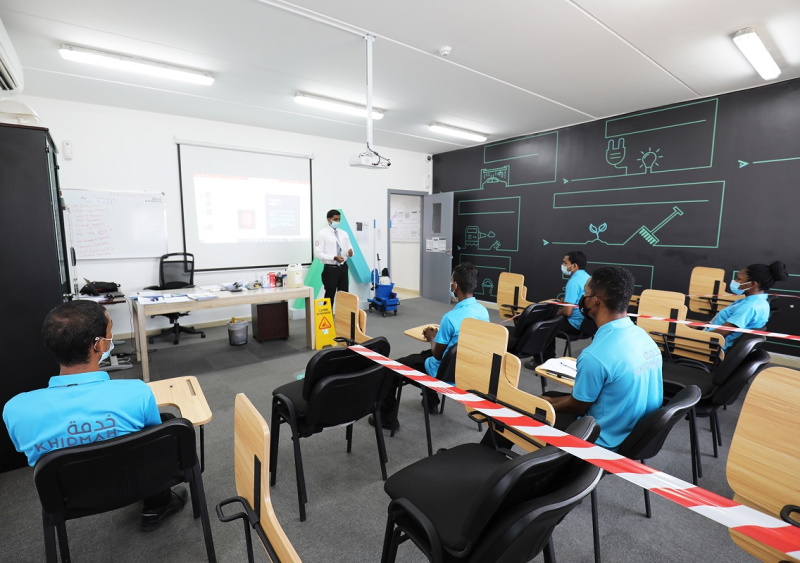 يشار إلى أنه تم إطلاق “مركز خدمة للتدريب" في عام 2019 بهدف توفير برامج تدريبية على مختلف المهارات والخبرات لتعزيز قدرات الفرق الفنية على إدارة الخدمات المتكاملة للمرافق، وتعريفهم بأحدث التقنيات والتوجهات في القطاع. وأطلقت شركة "خدمة" أيضاً "مركز التدريب المتنقل " في عام 2021، وذلك بهدف تقديم التدريب الميداني لموظفيها الفنيين لاكتساب المهارات العملية في جميل أنحاء الدولة. وتم تصميم المركبة عبر تحويل حافلة تضم 59 مقعداً وتقسيمها إلى منطقتين للتدريب النظري والعملي، وتتسع لتدريب حتى 9 موظفين في الوقت نفسه.