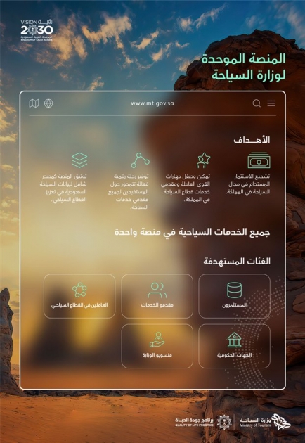 ويأتي تطوير المنصة الموحدة ضمن جهود وزارة السياحة لتعزيز مسيرة التحول الرقمي في المملكة، والمساهمة في تحقيق مستهدفات رؤية 2030، برفع عدد الزيارات السنوية السياحية للمملكة إلى 100 مليون زائر بحلول العام 2030.وذكر معالي الوزير الأستاذ أحمد الخطيب، أن وزارة السياحة اليوم تقوم بقفزةٍ نوعيةٍ أخرى على مستوى التمكين الرقمي، وتسخير التقنية لخدمة أهداف المملكة السياحية. ونوه معالي الوزير إلى أن الوزارة قطعت عدداً من الوعود في مستهل العام الحالي، وتحديداً في مؤتمر ليب الذي عقد خلال شهر فبراير الماضي، وبإطلاق "المنصة الموحدة" اليوم، فإن الوزارة تفي بأحد هذه الوعود، وهو استحداث منصةٍ تدعم جهود التحول الرقمي في المملكة، وتيسر تقديم خدمات الوزارة لكافة المستفيدين.