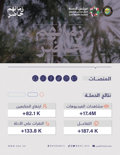 هذا وحققت حملة "زمانهم حاضر" نتائج عالية لعدد مشاهدات فيديو الحملة حيث بلغت أكثر من 17.4 مليون مشاهدة وبتفاعل إيجابي بأكثر من 187.4 ألف، وبالنقر على الأدلة بـ 133،8 ألف مره، وأرتفاع في أعداد المتابعين الجدد لحسابات المجلس بـأكثر من 82.1 الف متابع، وكانت هذه النتائج عبر حسابات مجلس الصحة الخليجي في تويتر وأنستقرام و الفيس بوك و اليوتيوب والتيك توك.