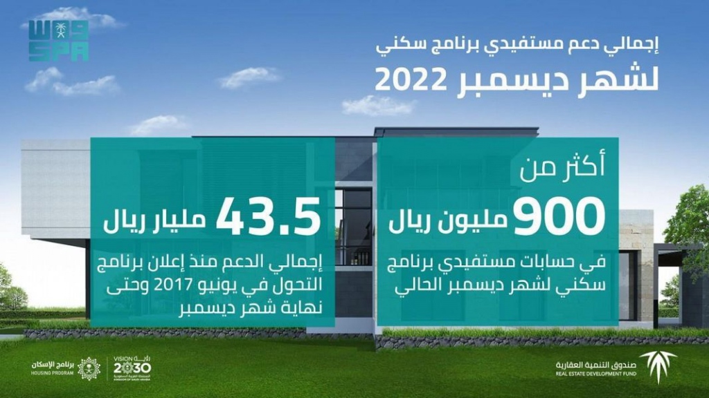 وأوضح الرئيس التنفيذي للصندوق العقاري منصور بن ماضي أن إجمالي دعم شهر ديسمبر بلغ أكثر من 900 مليون ريال، خُصص دعماً لأرباح عقود التمويل العقاري المدعوم، مبيناً أن إجمالي ما تم إيداعه في حسابات مستفيدي سكني منذ إعلان برنامج التحّول في يونيو 2017 حتى شهر ديسمبر 2022م بلغ نحو 43.5 مليار ريال .