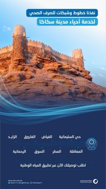 أعلنت شركة المياه الوطنية، ممثلة بالقطاع الشمالي عن الانتهاء من تنفيذ مشروعًا بيئيًا في مدينة سكاكا بمنطقة الجوف بتكلفة تزيد على (79.8) مليون ريال، والذي يهدف إلى رفع نسبة تغطية خدمات الصرف الصحي بالمنطقة.