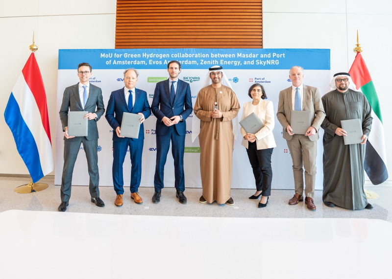 أعلنت شركة أبوظبي لطاقة المستقبل "مصدر"، إحدى الشركات العالمية الرائدة في مجال الطاقة المتجددة، اليوم عن توقيع اتفاقية مع كل "ميناء أمستردام" و"سكاي ان آر جي"، وايفوس أمستردام" و"زينيث انرجي"، لاستكشاف سبل تطوير سلسلة توريد الهيدروجين الأخضر بين أبوظبي وأمستردام لدعم احتياجات السوق الهولندية والأوروبية.