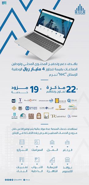 من جهته، قال الرئيس التنفيذي للشركة الوطنية للإسكان محمد البطي: "إن الشركة تعمل على مشاريع تجاوزت مبيعاتها 100 مليار ريال، حيث نستهدف الوصول لضعف القيمة خلال السنوات القادمة، وتعمل على دعم المحتوى المحلي وتوطين الصناعات؛ مما يسهم في تحقيق مستهدفات هيئة المحتوى المحلي.