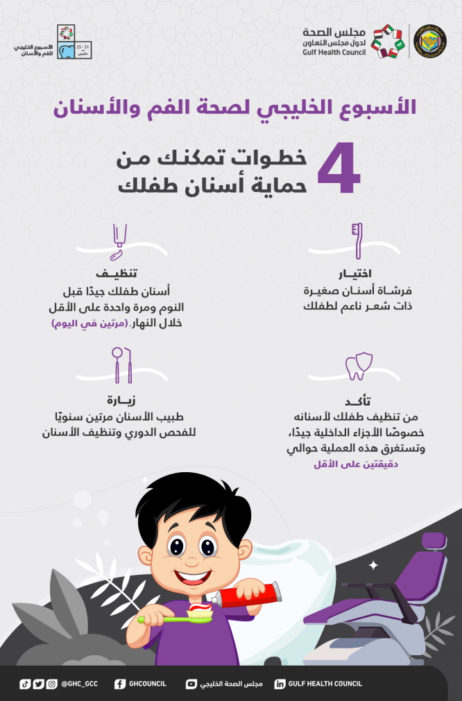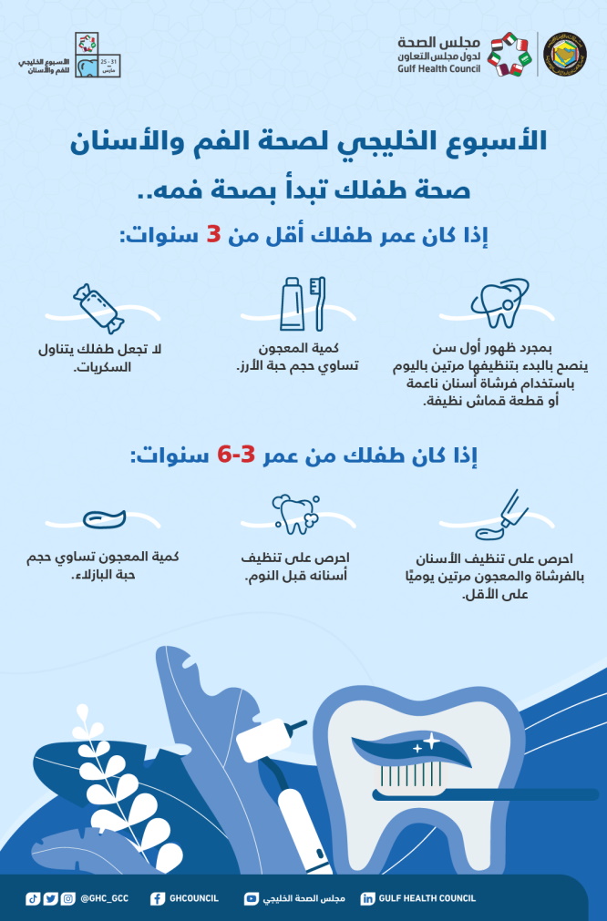 فعل مجلس الصحة لدول مجلس التعاون الخليجي الأسبوع الخليجي لصحة الفم والأسنان وذلك من خلال إرشادات توعوية وتثقيفية متنوعة نشرها من خلال حساباته الرسمية في وسائل التواصل الاجتماعي.