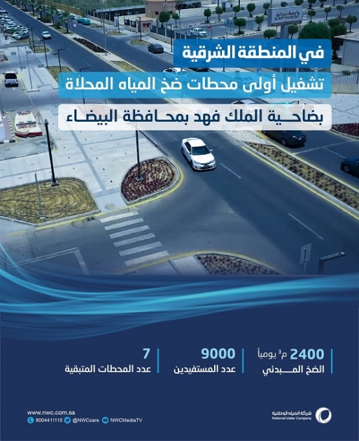بدأت شركة المياه الوطنية، ممثلة بالقطاع الشرقي بالتشغيل التجريبي لباكورة محطات تنقية مياه الشرب المصغرة بضاحية الملك فهد بمحافظة البيضاء في المنطقة الشرقية التي يبلغ عددها (8) محطات بالمحافظة، من أصل (15) محطة لتنقية مياه الشرب في مدن المنطقة الشرقية ومحافظاتها، بهدف الارتقاء بجودة المياه المقدمة للعملاء، وزيادة نطاق التغطية بالمياه المحلاة.