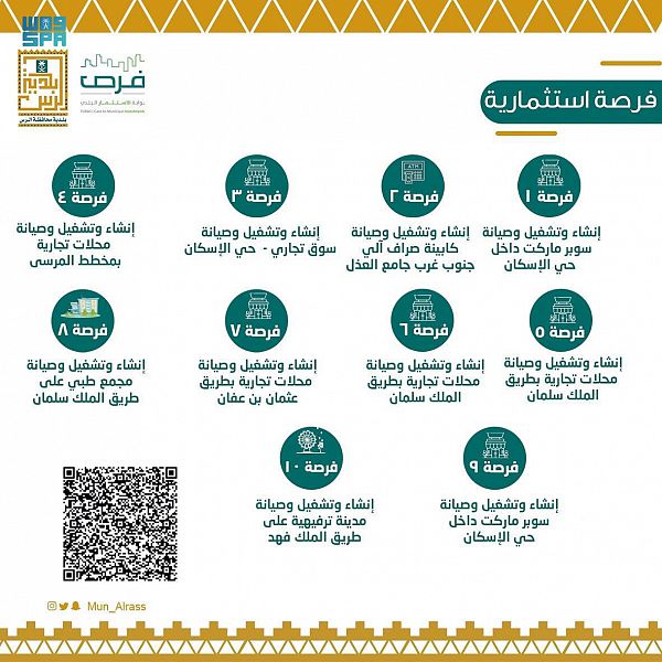 طرحت أمانة منطقة القصيم ، حزمة متنوعة من الفرص الاستثمارية لإنشاء وتشغيل وصيانة عدد من الأنشطة التجارية في 10 مواقع استثمارية في محافظة الرس.