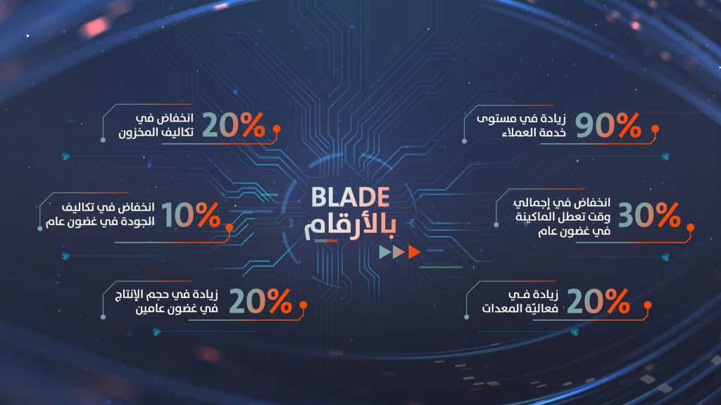 وأشار حامد إلى أن إطلاق مشروع Blade يساهم في تعزيز مكانة "دوكاب" كأول مزود لحلول الطاقة في دول مجلس التعاون الخليجي، عبر تبني ابتكارات الثورة الصناعية الرابعة في عملياتها التشغيلية، مثل إنترنت الأشياء، والحوسبة السحابية، وتحليلات البيانات الضخمة، والذكاء الاصطناعي (AI )، وتعلم الآلة، وهو ما سيؤدي إلى زيادة حجم الإنتاج بنسبة 20٪ في غضون عامين، ورفع مستوى خدمة العملاء وتلبية احتياجاتهم إلى 99٪، وزيادة الكفاءة الإجمالية للمعدات (OEE) بنسبة 20٪ في غضون عام.