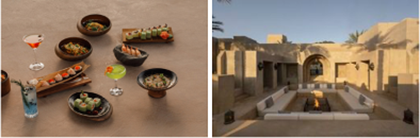 سيستمتع الضيوف بأطعمة ذات لمسة متطورة على أسلوب إيزاكايا التقليدي، إذ يتضمن البرانش مجموعة مختارة من المقبلات بما في ذلك تمبورا الجمبري المميز، يوزو تشيلي مايو، الحبار المقلي المقرمش، بالإضافة إلى مجموعة متنوعة من الساشيمي والنيجيري وماكي. بالإضافة إلى لحم البقر ياكينيكو مع tahoon Mayo من محطة طهي robata الحية، تليها الأطباق الرئيسية المميزة بما في ذلك سمك القد الأسود المتبل بالميزو ، الجمبري النمر الجامبو، و wagyu ribeye الأسترالي المشوي مع المايونيز الكمأة، بالإضافة إلى مجموعة متنوعة من الحلويات كالآيس كريم، الشوكولاته، والفواكه الاستوائية إلى جانب قائمة من المشروبات الغازية.