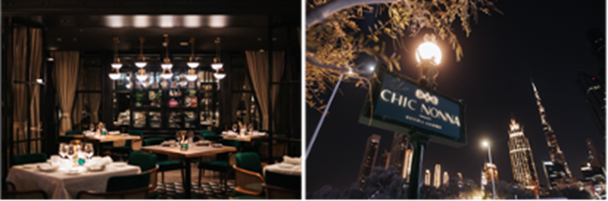 يعد المكان فريد من نوعه حيث يحتضن التراث الإيطالي جوهر دبي العالمي، ومن المقرر ان يقدم قائمة طعام إيطالية حيث تم تصميم هذه القائمة لتحقيق توازن بين تقاليد الطهي الإيطالية والابتكار. يوفر شيك نونا إطلالات خلابة على برج خليفة لقضاء أمسية رومانسية مثالية.