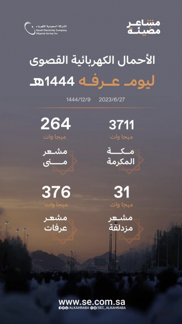 سجّلت الشركة السعودية للكهرباء أحمالا تاريخية في مشعر عرفات اليوم، حيث بلغت الأحمال الكهربائية القصوى ظهر اليوم 376 ميجا وات دون تسجيل أي انقطاعات مؤثرة، رغم ارتفاع الأحمال مقارنة بالعام الماضي، مشددة على موثوقية الخدمة وجاهزية فرق العمليات لمراقبة أداء الشبكة على مدار الساعة.