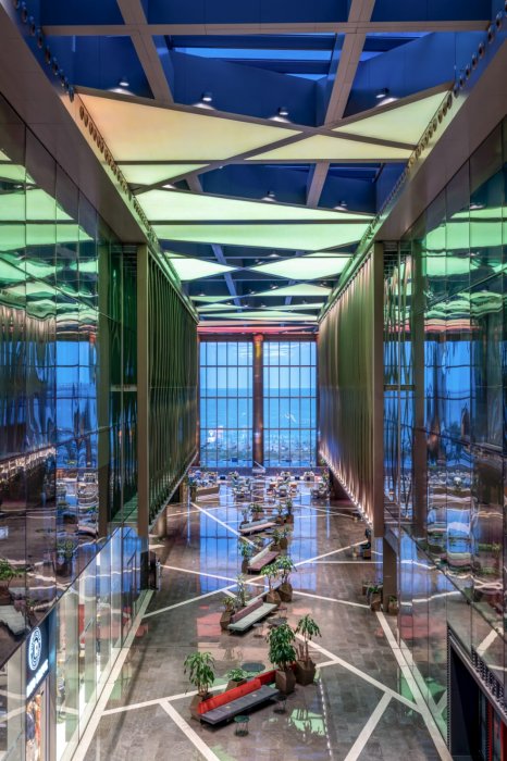 ومما لا شك فيه بأنّ الشراكة الحاصلة بين الفندق والمطعم أنتجت حالة إبداعية من الصفاء الذهني والرضا الخدمي والنصيحة المستمرة بزيارة هذا المطعم الراقي بإطلالته الخلابة، واستقبال الفريق العامل فيه بمختلف تخصصاتهم، وليس بمقدورنا تجاوز الحديث عن هذا المطعم دون التنويه لديكوراته الساحرة بألوانها وتفاصيلها التي تسرق النظر وتسبب الراحة النفسية للمضي قدماً في العديد من الزيارات المستقبلية إلى مكان من جنسِ ألف ليلة وليلة بخياله وإدهاشه وحسنه.