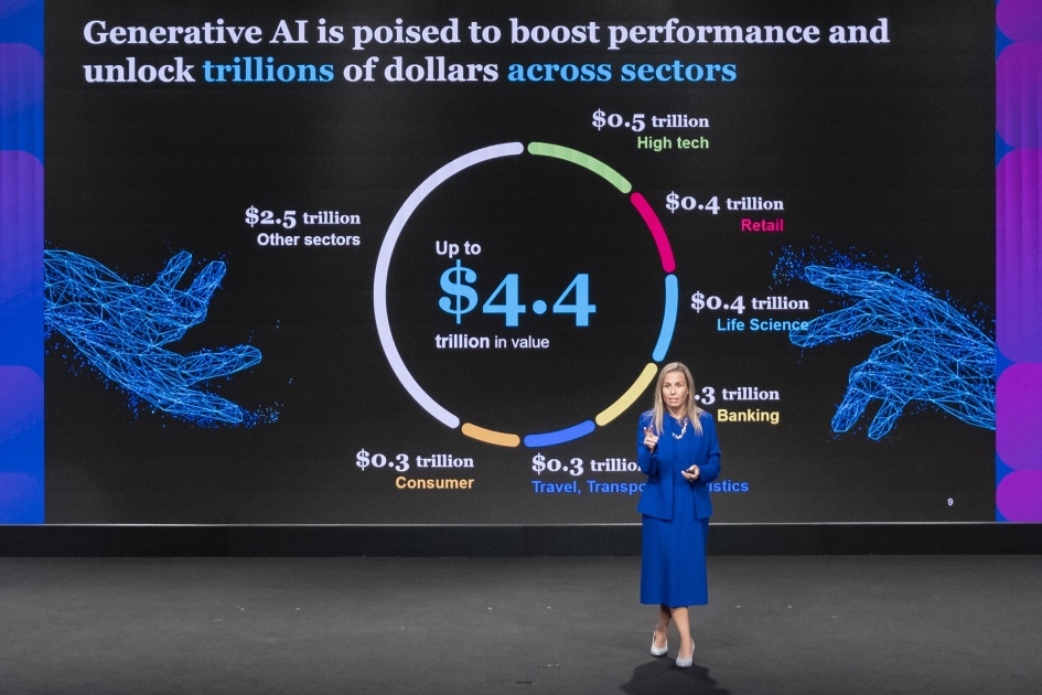 وأوضحت أن هذا التطور الذي يشهده قطاع الذكاء الاصطناعي لا يعني فقدان الأفراد لوظائفهم، وقالت: "أجرت شركة ماكنزي مقابلات مع أكثر من 3000 قائد أعمال ووجدت أنهم يريدون استخدام هذه التقنية لزيادة حجم الإنتاجية بنسبة 20-30% حسب نوع العمل".