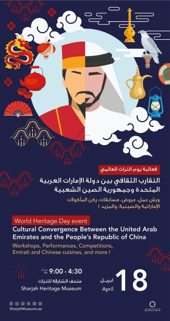 تزامناً مع يوم التراث العالمي الذي تحتفي به المجتمعات في الـ 18 من أبريل كل عام، تنظم هيئة الشارقة للمتاحف فعالية بعنوان "التقارب الثقافي بين الإمارات والصين" في متحف الشارقة للتراث، وذلك لتسليط الضوء على الروابط الثقافية العميقة بين البلدين، من خلال حزمة متنوعة من الأنشطة وورش العمل، والعروض الموسيقية والرسم وغيرها من الساعة الرابعة والنصف مساءًا وحتى الساعة التاسعة مساءً.