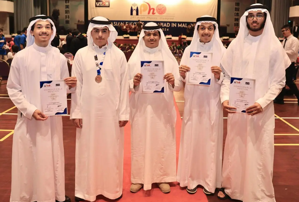 حققت المملكة العربية السعودية، ممثلة في مؤسسة الملك عبدالعزيز ورجاله للموهبة والإبداع (موهبة) ووزارة التعليم، خمس جوائز عالمية في الأولمبياد الآسيوي للفيزياء APhO 2024 في نسخته 24، والذي نظمته دولة ماليزيا في مدينة كامبار، بمشاركة 208 طلاب يمثلون 27 دولة، خلال الفترة من 3 إلى 10 يونيو 2024.