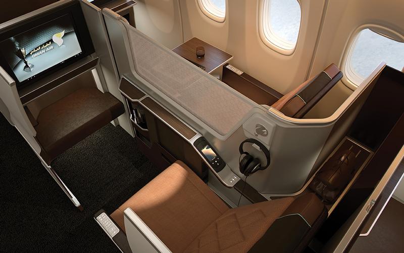 درجة رجال الأعمال على متن الطيران العماني تقدم مساحات داخلية كبيرة وفخمة جنبا إلى جنب مع أفضل وأحدث التكنولوجيا، مع مقاعد فسيحة ومريحة تتحول إلى سرير مسطح تماما ومسند للظهر، وقاعدة المقعد ومسند للأرجل يعمل بالكهرباء. وتستكمل التجربة الرائعة من خلال طاقم ضيافة على مستوى عالٍ من التدريب والتأهيل وحسن الضيافة بزيهم المميز، والذين يحرصون على تجسيد كرم الضيافة العمانية الأصيلة.