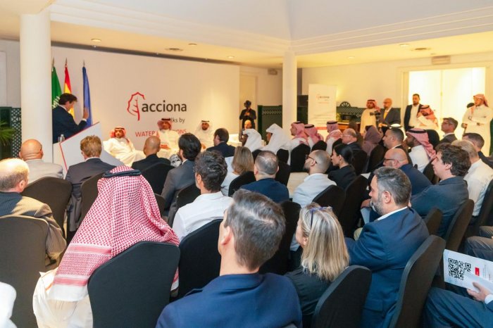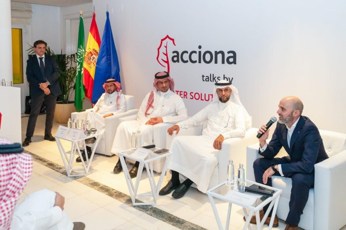 ومن بين المتحدثين الذين شاركوا في هذا الحدث: السيد خالد القرشي (الرئيس التنفيذي للشركة السعودية للمياه والصرف الصحي)؛ السيد خالد الحبيب (الرئيس التنفيذي للاستثمار WTTCO)، والسيد محمد الحجاج (الرئيس التنفيذي لشركة ENGIE المملكة العربية السعودية) ومانويل مانجون، الرئيس التنفيذي لخط أعمال المياه في ACCIONA. أدار المحاضرة جوليو دي لا روزا، مدير تطوير الأعمال في الشرق الأوسط لأعمال المياه في ACCIONA. وتبادل المشاركون تجربتهم في مجال المياه وأوضحوا أهمية إدارة موارد المياه بكفاءة لتلبية احتياجات النمو السكاني والاقتصاد المتوسع دون المساس بقدرة الأجيال القادمة على الوصول إلى المياه النظيفة. ونظرًا لمناخها الجاف وموارد المياه العذبة المحدودة، تعتمد المملكة العربية السعودية بشكل كبير على محطات تحلية المياه لتلبية احتياجاتها من المياه. وأكد المتحدثون أيضًا كيف تعطي رؤية السعودية 2030 أهمية الاستثمار في تكنولوجيا تحلية المياه مثل التناضح العكسي، وتوسيع قدرة محطات التحلية الحالية لضمان إمدادات موثوقة من المياه العذبة للاستخدام المنزلي والصناعي والزراعي.