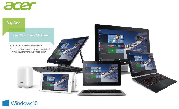 أعلنت أيسر (Acer)، الشركة الرائدة في مجال تصميم وتطوير أجهزة الكمبيوتر، أن جميع أجهزتها للعام 2015 التي تعمل بـأنظمة التشغيل ويندوز 7 وويندوز 8.1 حالياً، ستدعم الترقية إلى نظام التشغيل ويندوز 10 عند توفرها بتاريخ 29 يوليو 2015، وذلك في مختلف أنحاء منطقة الشرق الأوسط.
