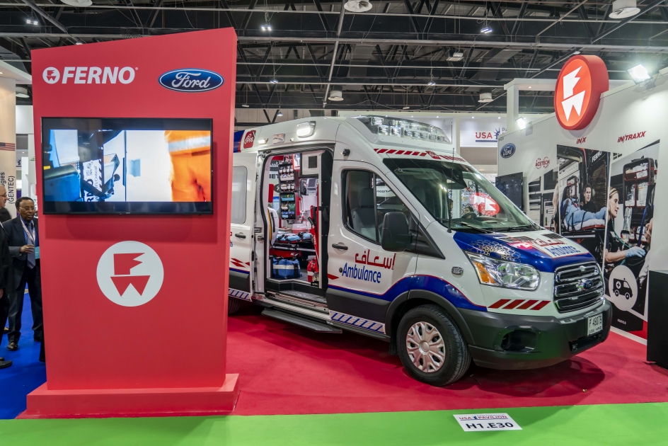 خضعت سيارة إسعاف فورد ترانزيت -- التي طورتها مؤسسة دبي لخدمات الإسعاف كأحد مشاريع مبادرة دبي 10X -- للتعديل على يد شركة مركبات الطوارئ الأميركية (American Emergency Vehicles)، وتمّ تزويدها بأحدث معدّات العناية بالمرضى والسلامة من "فيرنو-واشنطن" وأنظمة المعلومات والاتصالات من "فيرنو-آيستيك".