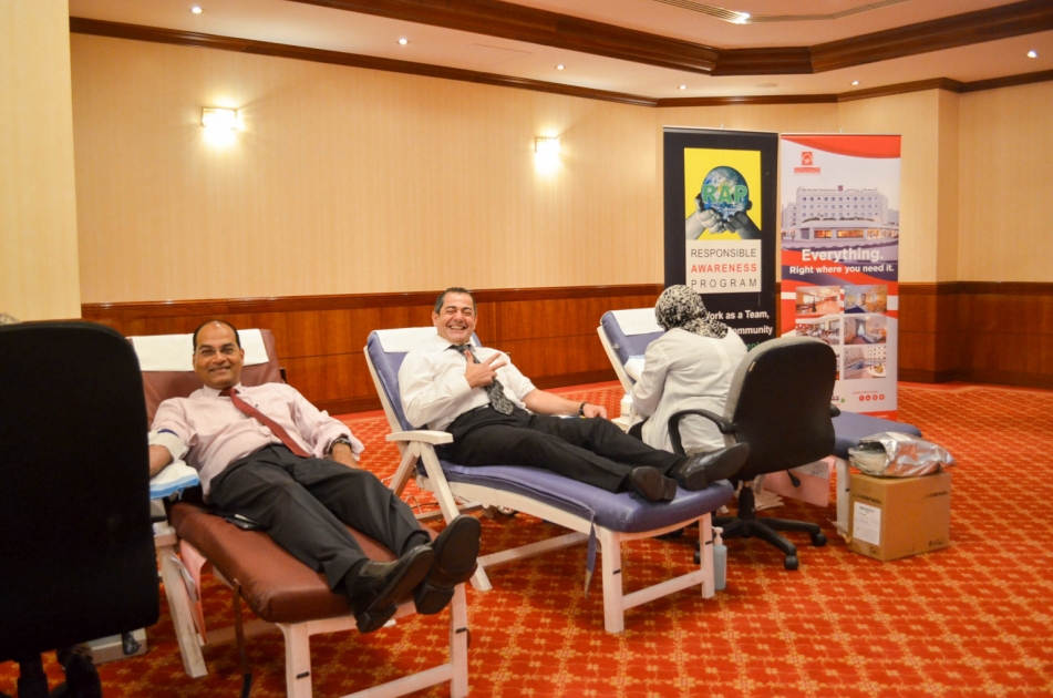 وأقدم كوادر الإدارة العليا والموظفين في الفندق إلى التبرع بالدم إلتزماً منهم بدعم تلك القضية الإنسانية، حيث تم جمع ما مجموعه 23 وحدة دم.