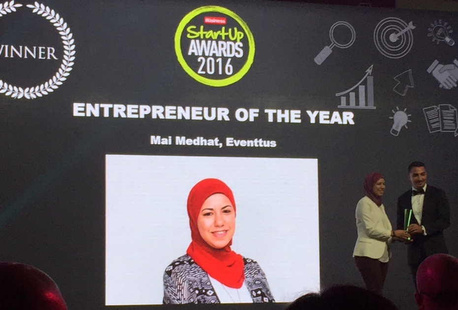تقديرأً لمجهوداتها المتميزة كرائدة أعمال شابة، فازت مي مدحت، الرئيس التنفيذي لشركة Eventtus بجائزة رائد أعمال العام المقدمة من مجلة أرابيان بزنس ستارت-أب Arabian Business StartUp. وجاء هذا الاعلان خلال حفل توزيع جوائز أريبيان بزنس ستارت – أب لعام 2016، الذي أقيم مؤخرا في إمارة دبي.