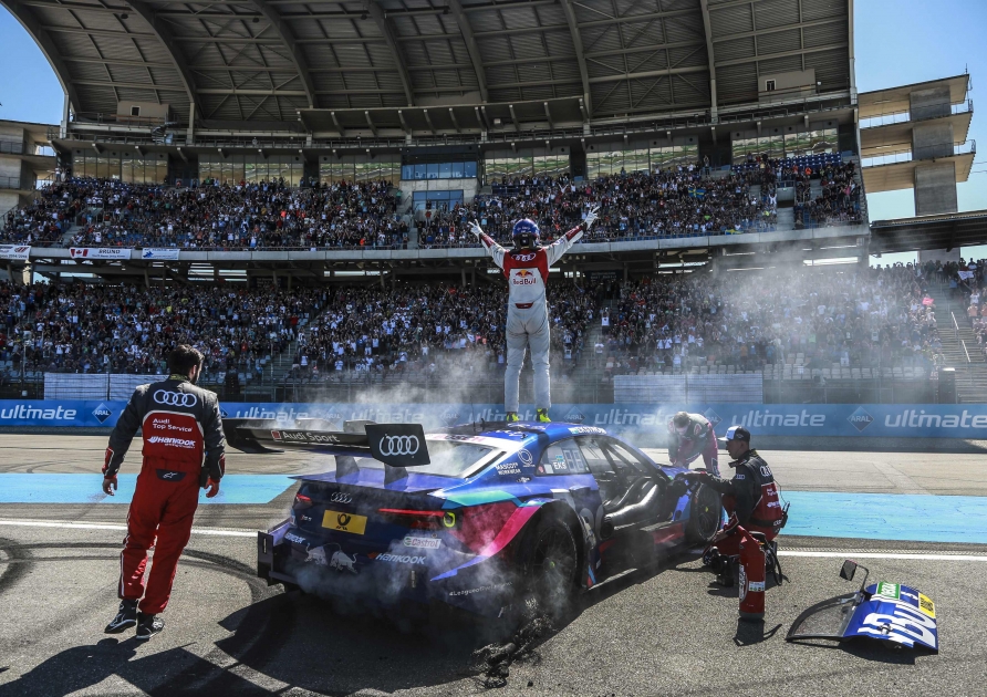 لقد كان سباق يوم الأحد مثالياً من جميع النواحي، سواء من ناحية الطقس أم الجمهور الرائع أو من ناحية ما شهده من أحداث ومحطات تجعل منه واحداً من أكثر سباقات بطولة ’دي تي إم‘ إثارةً وتشويقاً على الإطلاق. ولم تمنح المعارك الدائرة على الحلبة الجماهير التي سافرت إلى هوكنهايم يوم الأحد فرصة الجلوس في مقاعدهم خلال لفات السباق الـ 36. وكان مايك روكينفيلر أبرز الأسماء التي مثلت أودي خلال السباق. وخلال المرحلة النهائية، استفاد السائق الألماني من المبارزات الثنائية الدائرة في المقدمة ليتمكن من التغلب على الفائز بسباق يوم السبت جاري بافيت على متن سيارة ’مرسيدس- بنز‘ بعد معركة ضارية لنيل المركز الثاني. ولم يتمكن سوى الفائز بالسباق تيمو جلوك من فريق ’بي. إم. دبليو‘ من الابتعاد والفوز بالصدارة.