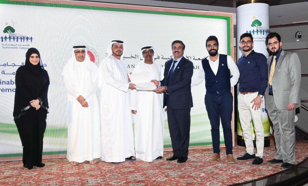 وقبل صعودها منصة التتويج خلال الحفل الذي أقيم في العاصمة أبوظبي حيث تم تسليم الجائزة خاضت الجامعة الأمريكية منافسة المسابقة التي تعد جزءا من مبادرة " الحرم الجامعي المستدام " وتمكنت من التفوق على الجامعات المشاركة وعددها 14 جامعة من داخل دولة الإمارات العربية المتحدة .