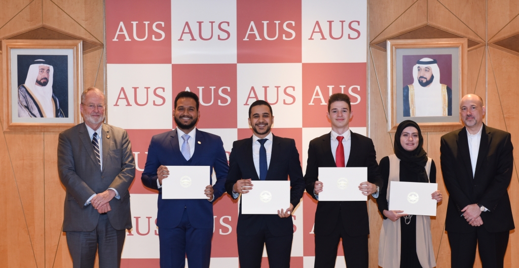 وفاز بالمنحة هذا العام كل من الطلبة ذوالفقار شهبروالا من كلية إدارة الاعمال، وكاترينا كاداباشي من كلية الآداب والعلوم وعمرو دجاني من كلية الهندسة وسعد بوجان من كلية العمارة والفن والتصميم.وقد تم اختيار الطلبة الأربعة بناء على تفوقهم الأكاديمي ومشاركتهم في الفعاليات اللاصفية، بما فيها المشاركة في الأنشطة الثقافية والأندية الطلابية والمسابقات الدولية والأعمال التطوعية.